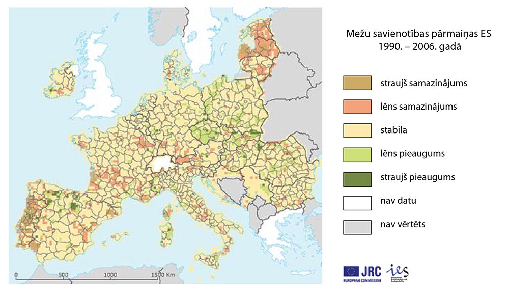 - formālo meža platību pieaugums būs apstājies, bet reālā meža platības turpinās samazināties, palielināsies arī mežu fragmentācija;