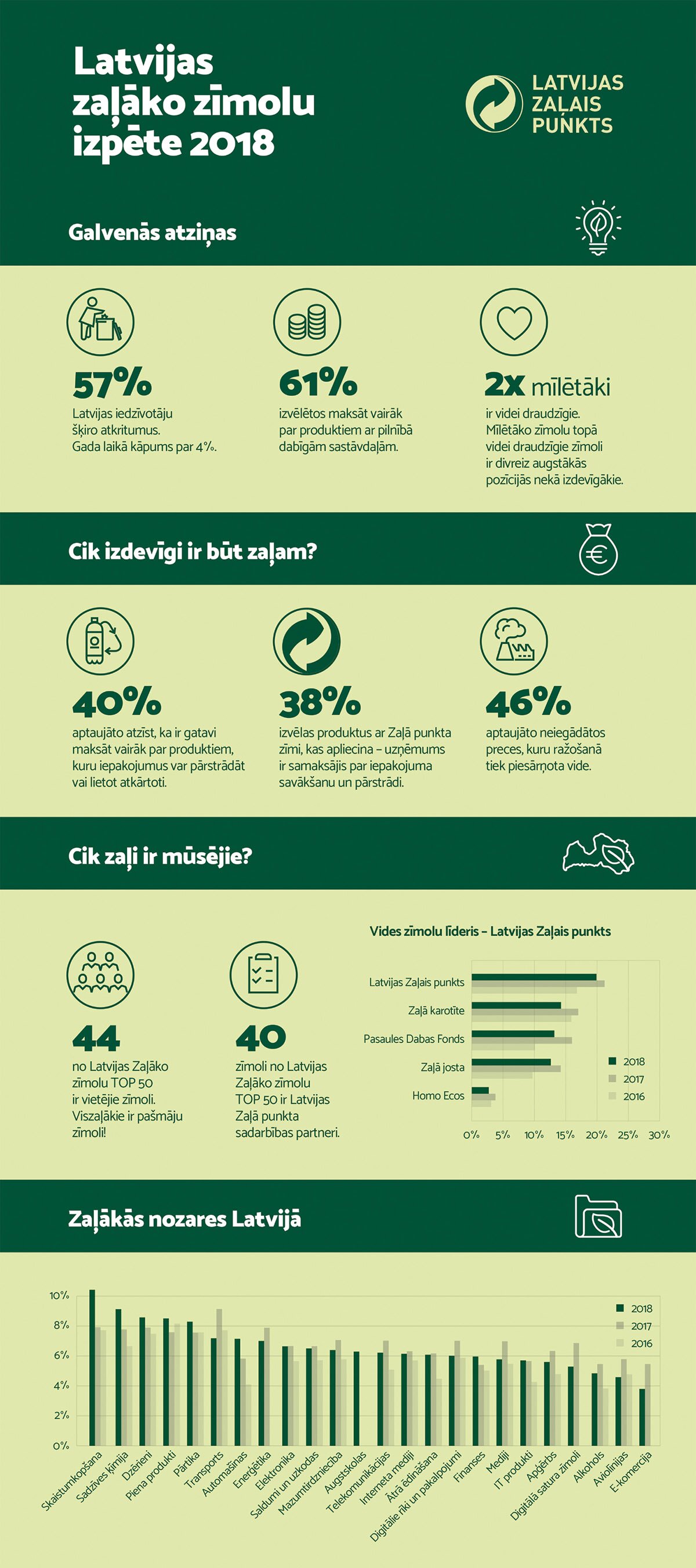 Bieži vien ražotāji taisnojas, ka videi draudzīgs iepakojums neizturēs lielajā konkurences cīņā par pircēja uzmanību. Bet varbūt nevajag cilvēkus novērtēt par zemu? Šogad veiktas aptaujas dati liecina, ka nu jau 83 procenti Latvijas iedzīvotāju uzskata atkritumu šķirošanu par svarīgu, 54 procenti dod priekšroku zīmoliem, kas iestājas par tīru vidi, 46 procenti nepērk lietas, ja zināms, ka to ražotājs piesārņo vidi, un 40 procenti respondentu ir gatavi maksāt vairāk par preci, ja tā iepakota pārstrādājamā vai otrreiz lietojamā iepakojumā.